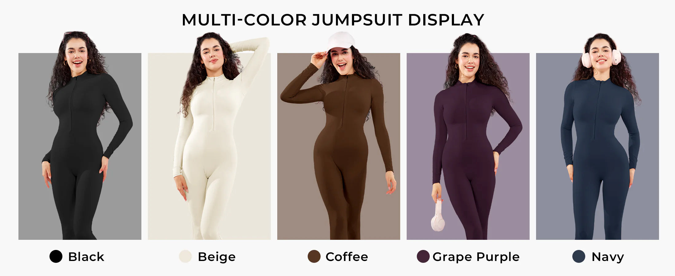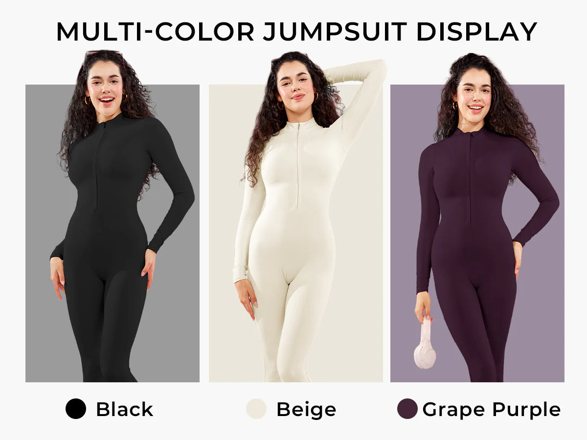 The upgraded Long Sleeve Zipper Jumpsuit features a fleece-lined interior—cozier and thicker for cold weather. With an easy half-zip collar and a fitted silhouette that flatters your waist, it’s made from buttery-soft fabric that feels like a second skin and keeps you warm.